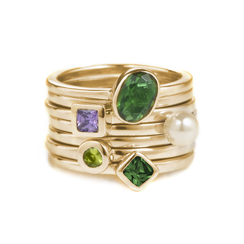 This stunning Lime Green Round stone is set on an 18K Gold Plated band to create the perfect stackable ring. This versatile ring can easily be worn on its own or combined with other rings from our stackable rings collection to create a unique combination. For more rings explore our Personalized Mothers Ring Collection. This ring is also available in Sterling Silver and 18k Rose Gold Plated.