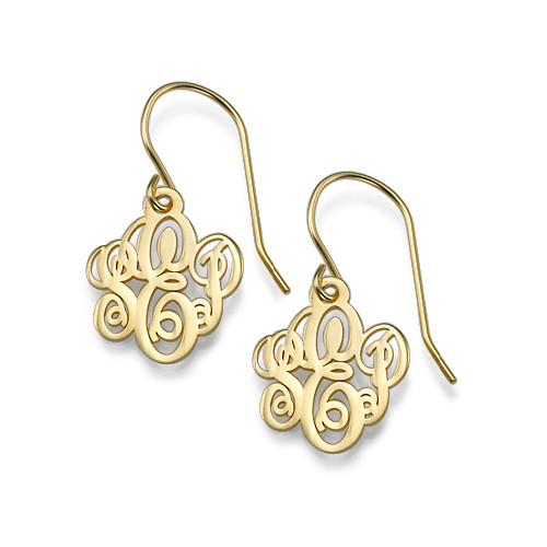 - Circle Monogrammed Earrings in 18k Gold Plating