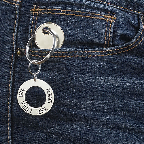 The pendant of the keychain is made out of 0.925 Sterling Silver.