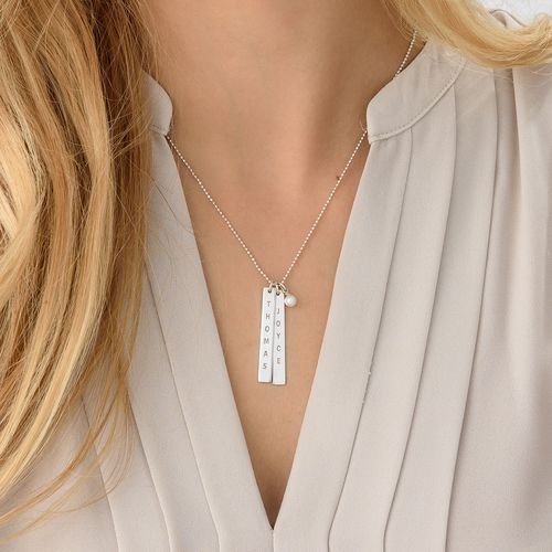 - Engraved Vertical Bar Necklace in Sterling Silver