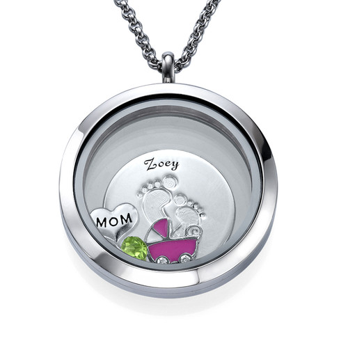 - Engraved Floating Charms Locket - "For Mom or Grandma"
