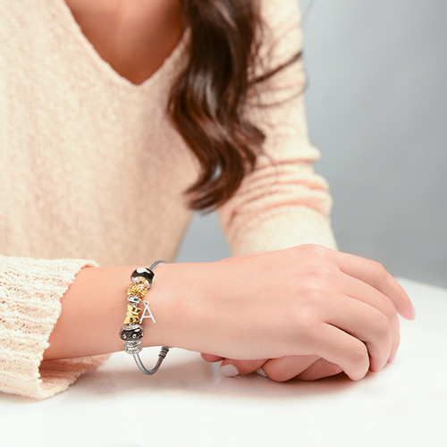 Flowers Silver Gold Plated Bead with Cubic Zirconia
