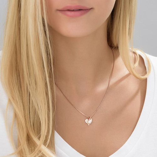 Heart Initial Necklace with Pearl in Rose Gold Plating