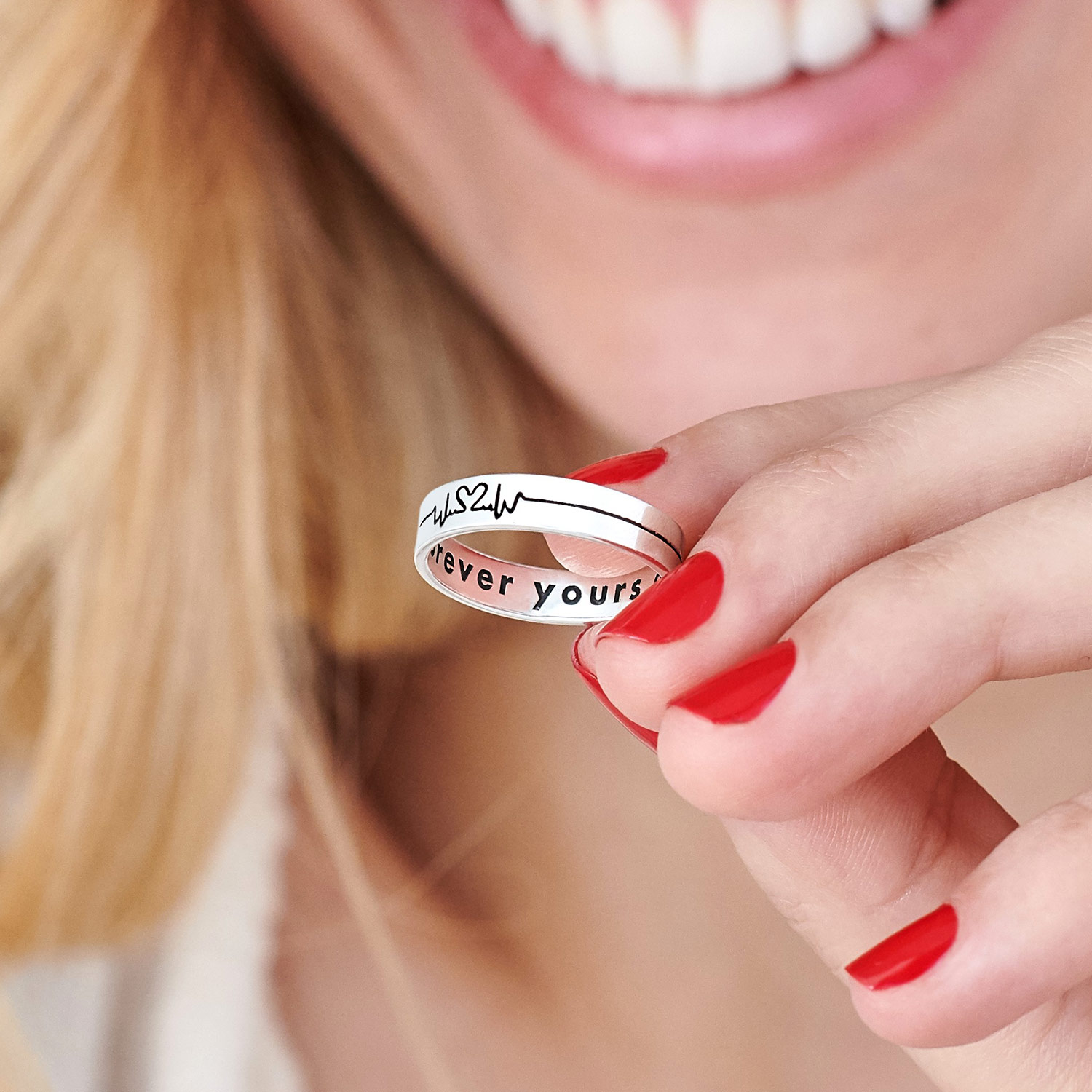 Our Heartbeat Couples Rings are perfect for use as promise rings or simple wedding rings with a hidden message of romance and caring, yet they can go on any finger and serve as simple but meaningful accessories. This ring is always trendy, perfectly versatile, and it's a great combination for every day, by itself or alongside other rings.