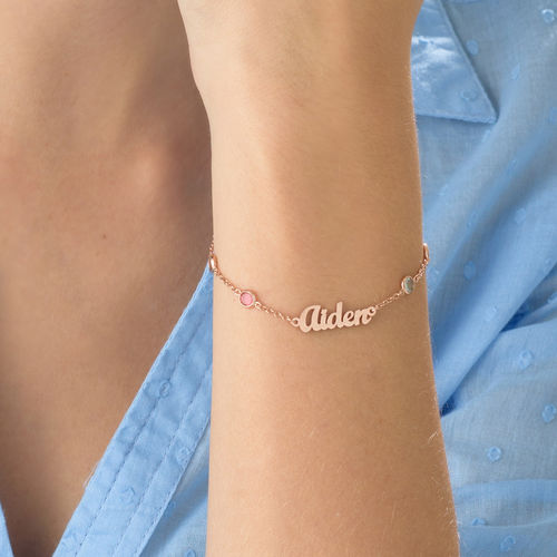 Name Bracelet with Multi Colored Stones in Rose Gold Plating
