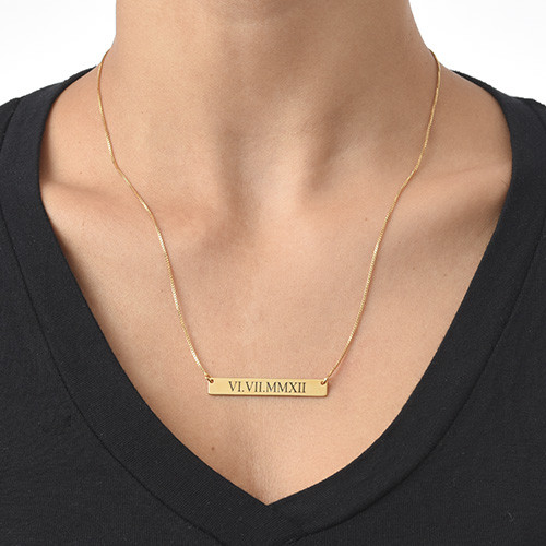 - Engraved Vertical Bar Necklace in Sterling Silver