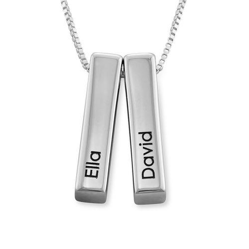 - Engraved Vertical Bar Necklace in Sterling Silver