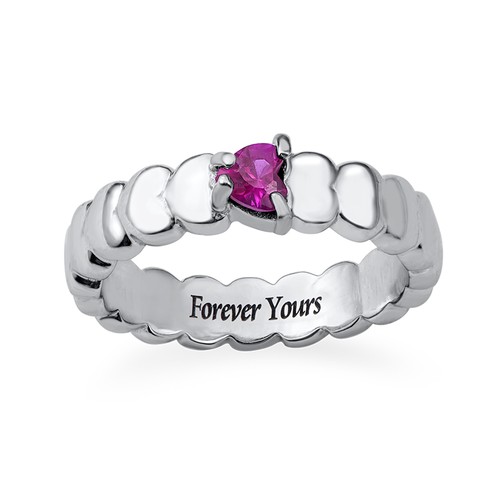 Any trendy Mom will love these stackable Single Stone Mother's Rings! Choose up to three rings, each with a birthstone and an inside engraving to complete a stylish look. Each band is made of Silver accompanied by the stone of your choice to make this piece really sparkle.