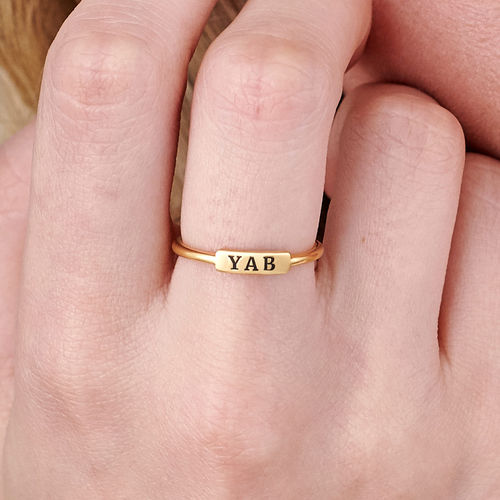 Great for mixing and matching with other personalized stacking rings from our collection, this ring is also available in your choice of Sterling Silver or 18K Rose Gold Plating. Lots to love!