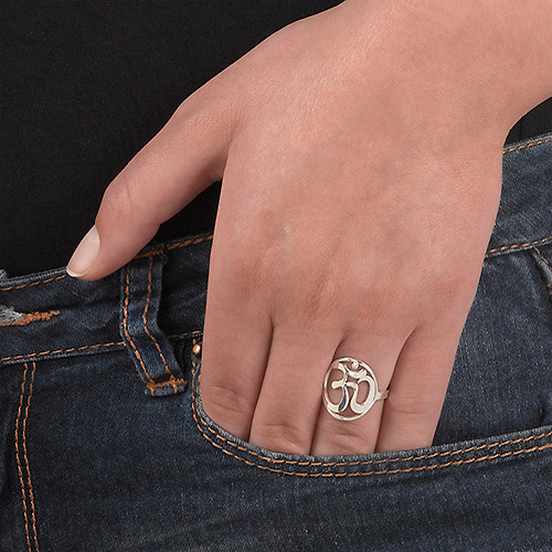 Remember to breathe! Our Sterling Silver Om Ring is more than a wonderful accessory: It's also a timely reminder to enjoy being where you are, living life in this beautiful moment. Sleek, simple, and just right for wearing with all your favorite styles, this silver Om ring offers a curvaceous, intricate design. The cutout “Om” symbol lets your skin peek through, creating just the right amount of contrast without interfering with your daily activities – including those important asanas! This beautiful yoga ring is crafted of 0.925 Sterling Silver for lasting beauty and a gorgeous yet easy-care glow. Love the look and want to see more? We invite you to visit our collection for name rings to wear, enjoy, and share with the ones who mean the world to you.