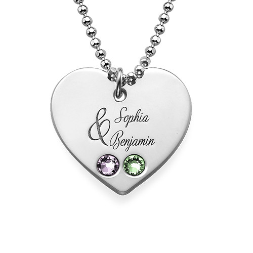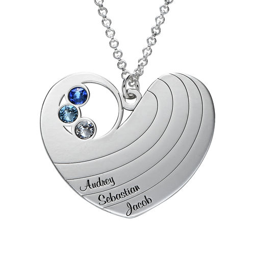 - Mother Heart Necklace with Birthstones in Sterling Silver