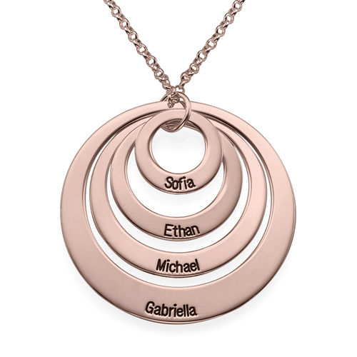 - Four Open Circles Necklace with Engraving in Rose Gold Plating