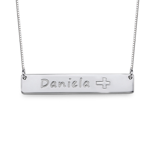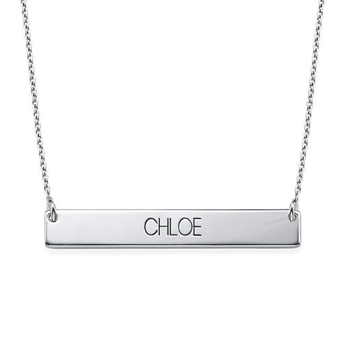 - Engraved 3D Bar Necklace in Sterling Silver