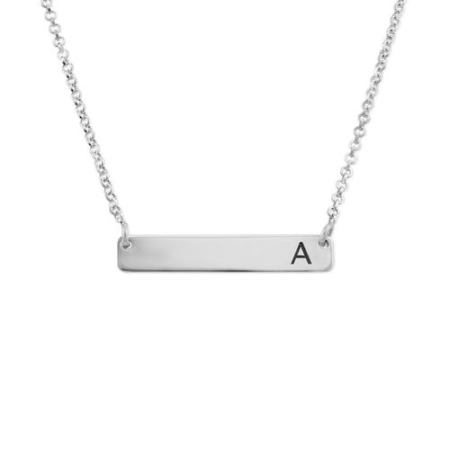 - Horizontal Bar Necklace with Initial in Silver