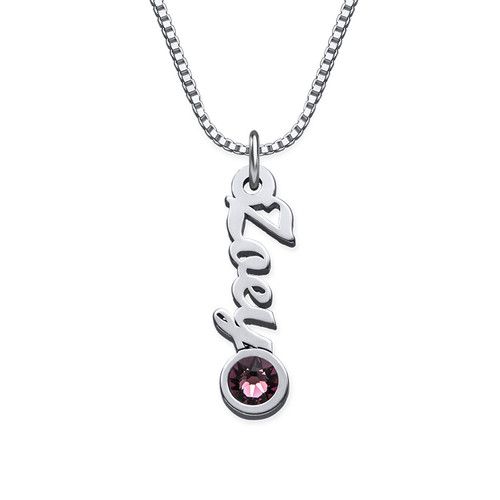 A gorgeous gift with just the right amount of sparkle, our Tiny Sized Vertical Name Necklace is perfect for any occasion. Great for a mom or grandma, it's also ideal for an aunt, a sister, or even a group of best friends who want to keep one another close. Crafted of Sterling Silver and suspended from a matching silver box chain, this beautiful necklace includes your choice of one to five names or meaningful words, each adorned with a corresponding birthstone.